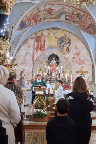Svetu misu u crkvi Presvetog Trojstva predvodio je vlč. Kristijan Stojko, a članovi zajednica sudjelovali su u svetoj misi oživljavanjem Evanđelja, čitajući čitanja i molitvu vjernika, te pjesmom.