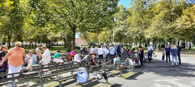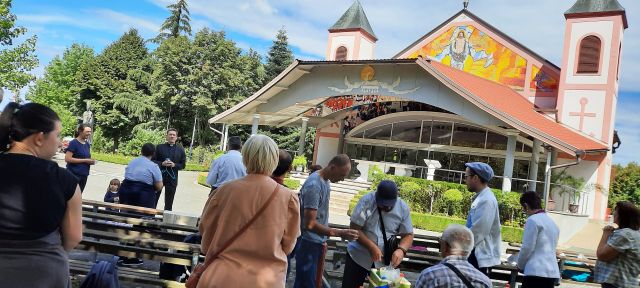 Ručali smo i podružili se u okrilju zavjetne kapelice svetišta, zapjevali i zaplesali, gdje su nam se pridružili i vlč. Petar Mlakar i fra. Ivan Široki.
